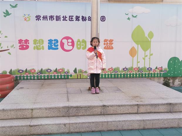 升旗仪式后,是升旗手介绍,本次升旗手是果果三班的宗禾媛小朋友,她爱好唱歌、跳舞、画画。今天,她给大家带来了一首好听的歌曲《轻轻的告诉你》。动听的歌声引得下面小观众情不自禁的跟唱。