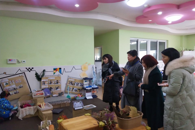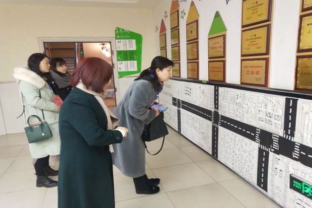 林园长一行分别从幼儿园班级环境、公共环境、户外环境三大方面进行了调研,林园长说:“走进罗幼,让人感受到一种浓浓的人文气息,教师和孩子积极向上,给人很亲切的感觉;教师能给予幼儿开放的环境与材料,让幼儿与之互动;教师能走进幼儿,蹲下身子,仔细聆听孩子的声音,解读孩子的需求,默默地支持。”