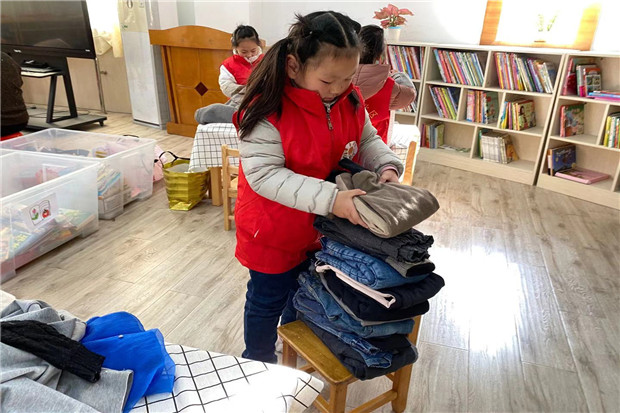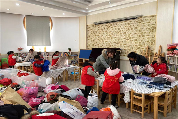 于是,孩子们着手准备义捐使用的箱子、标记、袋子,并带来整洁的衣物进行捐赠、分类整理、打包邮寄。
