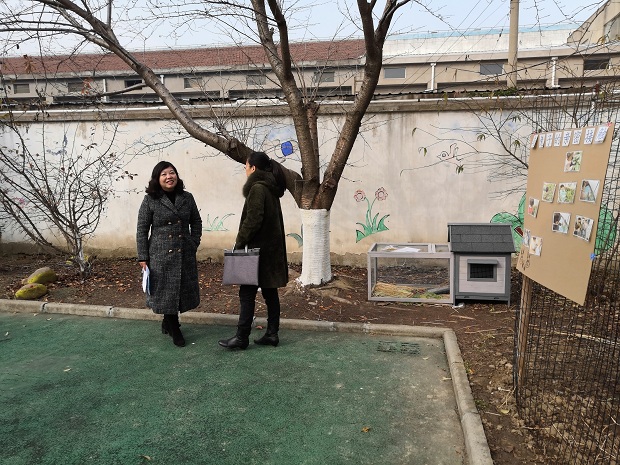 在张小红园长及安幼园行政的陪同下,姐妹园园长及骨干老师一路查看环境。对于安家幼儿园户外环境的打造给与了肯定。随后大家把目光聚焦到各个区域中,围绕区域计划、区域故事、支架呈现、幼儿足迹等进行了剖析,向纵深处挖掘与帮扶先进园的差距,并现场给出了指导意见,以期让安幼的户外区域与课程游戏化理念融合得更加完美。