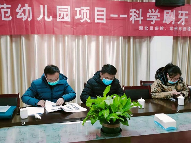 2020年12月30日上午11点05分,常州市疾控中心董惠斌主任,新北区疾控中心张友科长,新北区教育局赵文佳主任走进新魏幼儿园,对新魏幼儿园争创“口腔健康促进示范幼儿园”进行现场验收。