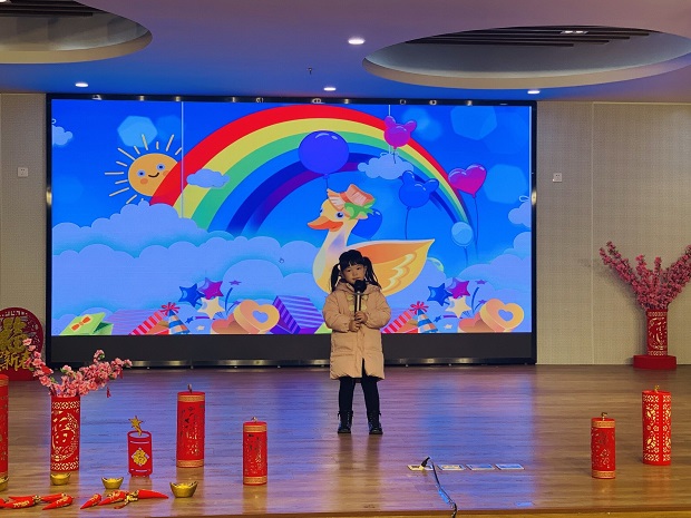活动在主持人的清脆的声音中拉开了序幕。手指舞《一粒豆》、舞蹈《石头剪刀布》、歌曲《祖国我们爱你》、歌曲《唐诗联唱》等精彩节目接踵而至,芽芽三班柴梓琦、柴梓瑶小朋友带来的歌表演《听我说谢谢你》赢得了孩子们的阵阵掌声,芽芽一班曹晟尹、周泇妤小朋友带来的歌曲《新年好》引发了全体大合唱,欢快热烈的气氛把整个活动推向了高潮。