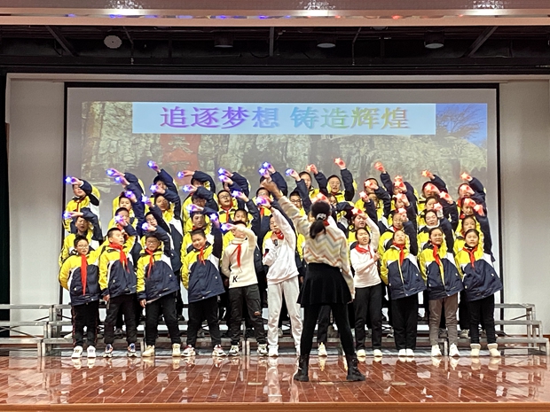 比赛现场,各班同学一上场就让所有人感受到了他们展现才华的渴望和洋溢青春的热情。七(7)班用一首《咸鱼》让我们感受到了他们对梦想的不懈追求;七(5)班同学的《倔强》表达了少年永不服输的精神;七11班的《骄傲的少年》则点燃了他们青春的热血;七2班同学手中闪烁的荧光棒,是那颗点亮夜空中最明亮的星;七9班同学那一袭红衣,如祖国山河图中最炫的那抹亮眼......