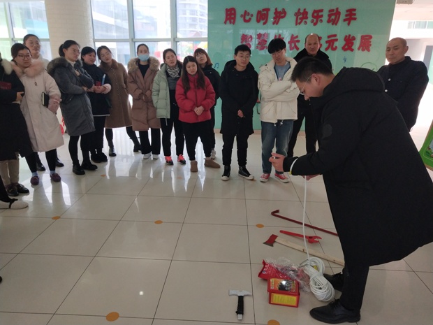 本着多一份防范,少一份危险的理念,该园坚持开展各种消防安全培训,通过培训来提升教职员工对“微型消防站”内器材使用的认知,增强教职员工应对突发事件的处理能力和意识,为幼儿的健康成长创造安全的教育环境。