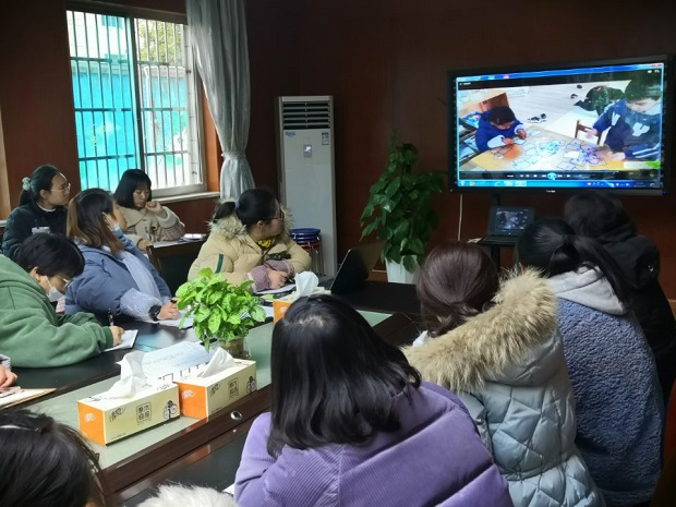 在殷丽珍老师的组织下,安幼的老师们集体观看了一个大一班益智区的活动视频。第一遍观看时老师们利用之前培训学习到的观察技巧,首先确定了观察的对象、目标和内容,为第二遍观看视频定下了方向和重点;第二遍观看视频,老师们都开始了速写模式,各自从视频中撷取自己需要的段落和关键信息点,转化成白描化的语言文字誊写在观察表格中,会议室中只有老师们刷刷刷的书写声;对幼儿的行为观察记录完毕,也是根据观察目标和内容,依照《指南》中各年龄阶段的目标对孩子的行为、能力进行评估分析,最后得出后续改进行动的开始。