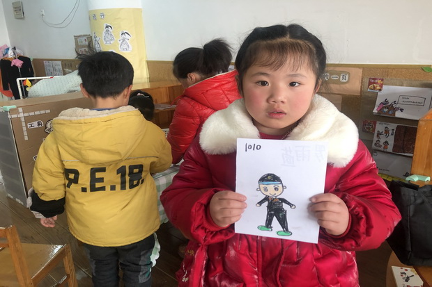 区域活动时,孩子们的兴趣也非常浓厚,他们尝试着画一画警察叔叔、阿姨的光辉形象,还用超轻粘土做一做警察小人的形象。孩子们执起稚嫩的画笔,用最真诚的心,画自己心目中最尊敬的人;用稚嫩的小手,做出最伟大的人。
