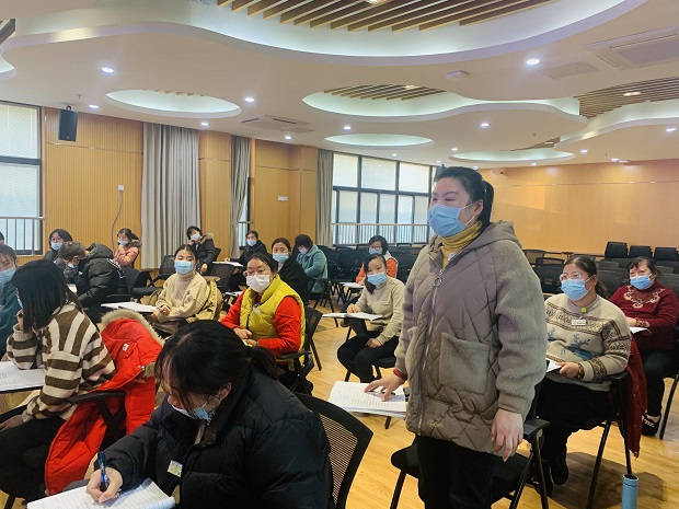 会议由王玉霞园长组织并主持,全体教师参加并学习了《常州市新北区关于进一步做好当前疫情防控工作的通知》、《省教育厅关于做好寒假前后学校疫情防控工作的通知》、《常州市疫情防控应急指挥部关于进一步做好当前疫情防控工作的通知》三份文件,对幼儿园日常的疫情监测、测温设备的规范使用、突发疫情应急处置流程、疑似感染症状应急处置、卫生清洁消毒等内容进行再次培训。在会议上,参会教师对涉及到的七步洗手法、突发疫情应急处置流程等对答如流,王园长再次强调并表示,严格按照幼儿园要求开展工作,尽职尽责,绷紧疫情防控这根弦。