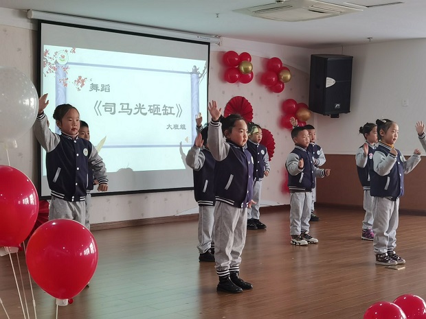 “读书节”闭幕式上,围绕中华民族优秀传统文化,大班的宝贝带来了歌伴舞《司马光砸缸》,孩子们充满童真童趣的表演,把这则耳熟能详的经典故事演绎得淋漓尽致。中班孩子们献上了手势舞《新年快乐》,小班的宝贝们则献上了歌曲《读书郎》,精彩的表演赢得了现场观众的阵阵掌声。