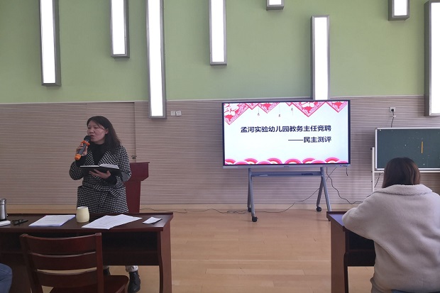 会议由耿甜副园长主持,共有4个议程:首先,陈洁副园长对本学期的园务工作进行了全面、客观、细致的回顾与总结,提出后面的工作方向。其次,各级组进行交流学习,推选下学期经验交流人员。再次,恽春燕园长对各部们教职员工认真负责、积极进取的工作作风给予了评价和肯定,肯定了教职工们一学期以来的辛勤付出, 接着就本学期教育教学、保育保健、教研科研等方面取得的成绩、存在的问题进行了总结。并结合当前疫情发展,提出防控要求以及一些安全注意事项。恽园长对下学期的工作提出了新的设想与展望,并勉励大家以更饱满的热情,更务实的工作作风,投入到新学期的工作中去。最后,为了下学期更好地开展工作,竞选教务主任,开展了民主测评,成功推选出马倩、周丽两位年轻后备力量。