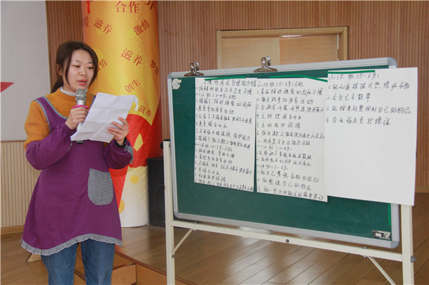 在活动现场,5组团队的保育员代表现场汇报,精彩的讲解聚集了本组成员的思考过程、也融合了教师代表的智慧结晶。同时,本次活动还特邀教学行政和班主任代表作为专业评委,从“培养内容与年段的匹配性”、“培养时长的合理性”、“内容梳理的全面性”等方面综合打分。我们希望通过竞赛的方式,在园内形成“比学赶帮超”的良好氛围,更促进保育员深入学习,正确解锁教育之码。
