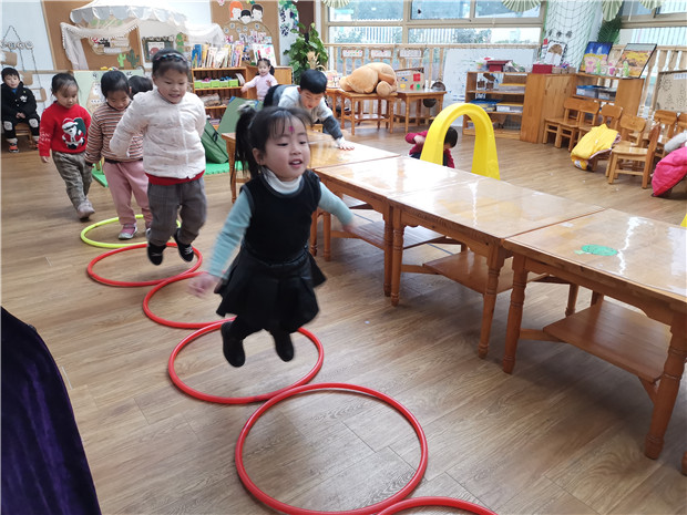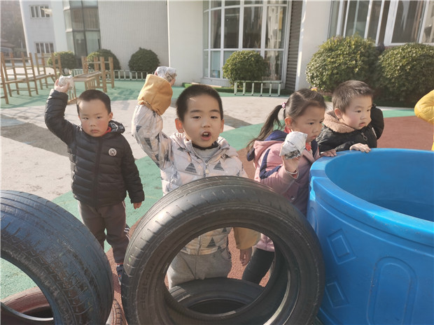 羊角球、五彩圈圈、纸球、独木桥……这些都是宝宝们户外活动的亲密玩伴。再冷的季节,都要坚持锻炼身体。看!宝宝们自己动手做纸球“打雪仗”,拱门、独木桥、软垫摆成了闯关关卡,圈圈和球成了赶小猪的道具。他们不怕苦不怕累,坚持完成任务冲向终点,品尝胜利的喜悦。