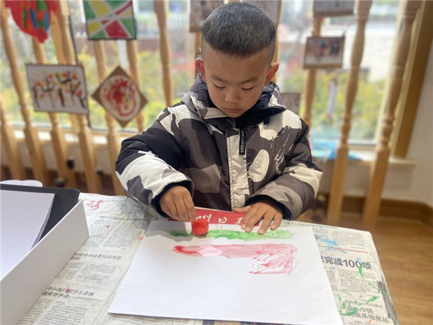 冬天怎会少得了冰和雪人,孩子们又会在美工区发挥他们的奇思妙想呢?让我们一起走进现场看一看吧!冰块遇上颜料,就像行走的彩虹,闪耀出五彩的光芒;你搓一个小圆,我搓一个大圆,组合成雪人,毛根和豆豆的点缀让它栩栩如生;一个个美丽的印花装饰出了一副副手套,别样而又温暖!孩子们无限的创意带来的惊喜惊艳了整个冬天。