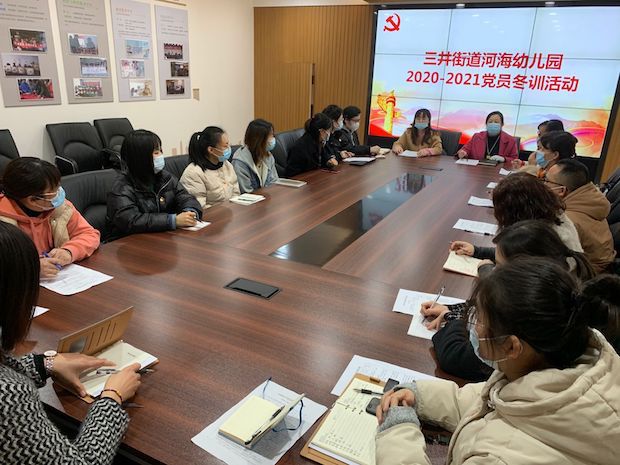 为了全面贯彻中国共产党第十九届五中全会精神,进一步加强党员教育管理,2021年2月6日,三井街道河海幼儿园党支部开展了党员冬训活动,全体党员及入党积极分子参与了活动。