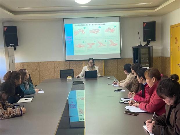 两位保健老师根据幼儿园实际情况,从疫情防控的要点、防控技能、消毒消杀过程中的注意事项等方面进行了具体的讲解,为幼儿园顺利开学工作做好全面的准备。重点对疫情防控应急预案、疏散方案、隔离程序、处理流程、等方面进行了具体培训,并就疫情防控中七步洗手法及消毒液的配比等相关方面展开详细介绍。保健老师还详细讲解了正确戴口罩、测体温、疫情防控期间师生入园、上课、活动、离园等各个环节的具体流程,通过讲解,老师们进一步掌握了正确洗手、戴口罩等日常防护的基本知识。
