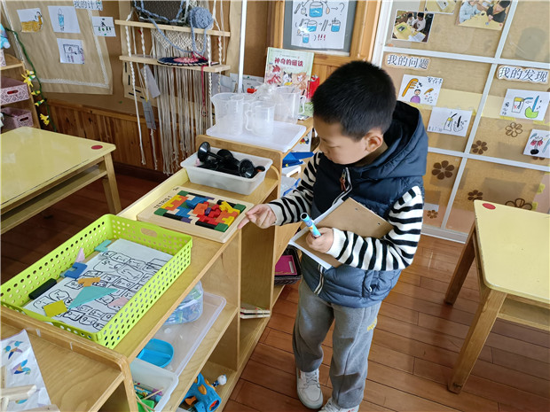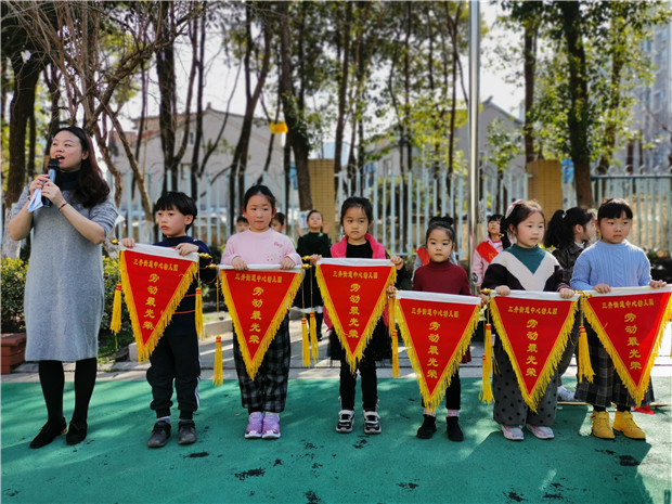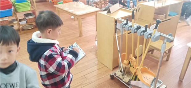 中大班的孩子们回顾昨日劳动的热闹场景,班级内通过自我推荐、大众评审、组内投票等形式初选了班级最佳除尘小卫士、最佳收纳小能手、最佳地板护理员、最佳小小魔力擦,这四名小朋友作为班级代表进行园内大评比。小评委们可是带着评选标准的哦,他们自主设计了评选记录表,对每个项目进行细致的检查。看一看,摸一摸,比一比,记一记,每个环节,毫不含糊。中班的孩子用打勾的形式,大班的孩子还附带了评选理由,最后统计整合,用贴纸的形式投上宝贵的一票。评选结果出炉啦,在庄严的升旗仪式中,园长妈妈授予他们集体劳动的“最高”荣誉——流动红旗。接过流动红旗,孩子们露出了自豪的笑容。