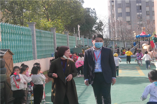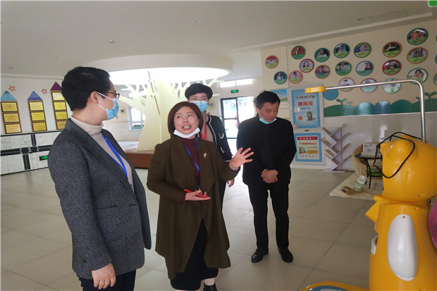2021年2月22日上午,罗溪镇宣传统战委员赵刚一行4人来园,在园长谢菊仙的陪同下例行开学工作检查。