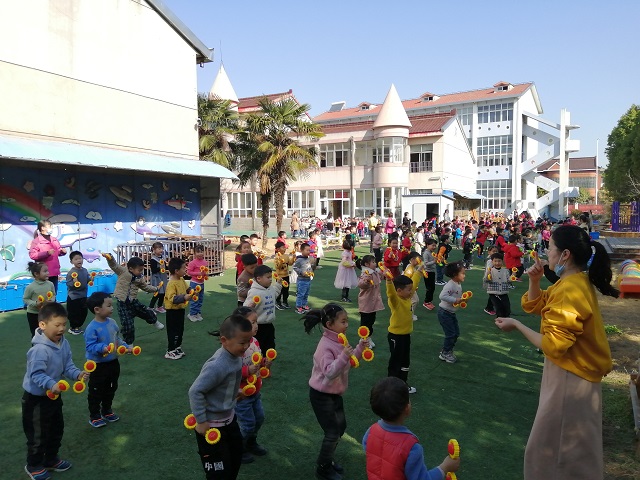 户外活动是孩子们最幸福的时刻,在操场上孩子们奔跑着,欢笑着;广播里播放着律动音乐,孩子们整齐的做着早操,活力四射;大班的小朋友们排着整齐的队伍,站立在国旗下升旗,老师们也给孩子送上来美好的祝福。