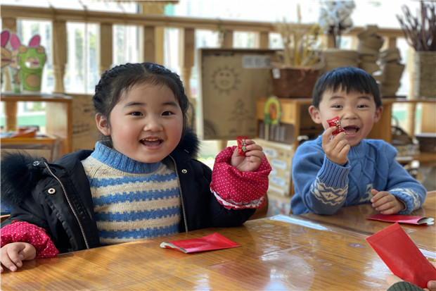早晨8点,每位小龙娃进入校园后,都收到了幼儿园为大家准备的新年礼物——牛年牛“红包”。别小瞧这个红包哦, 小中大年级组各不相同,都内含着精彩的活动、寄予了美好的期望:甜蜜牛牛,开开心心分享好滋味;活力牛牛,礼物发放播种新希望;乐享牛牛,寻宝挑战伴乐成长。伴随着孩子们银铃般的笑声,让我们一起开启“红包”中的小惊喜吧!