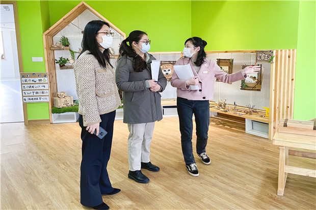 新北区教育局开学工作督查小组在新学期第一天莅临我园进行跑面检查,对四园区的开学情况进行细致询问和及时指导。在高亚媛园长的陪同下,督查组领导参观了我园园所环境,重点查看了疫情防控资料、消防设施、食堂卫生以及幼儿在园学习生活情况。在这过程中,督查组对我园开学工作的井然有序给予充分赞赏。