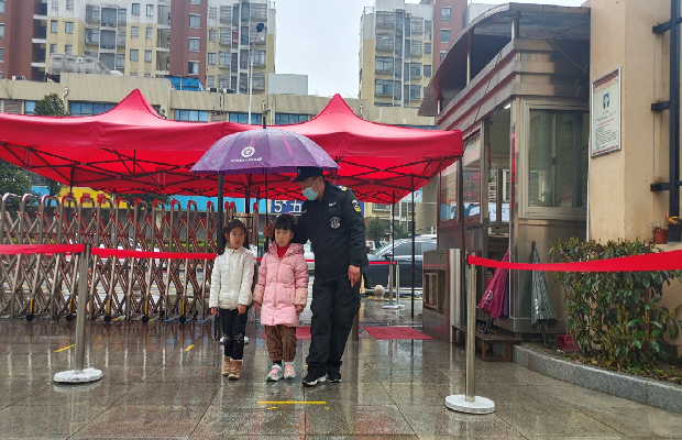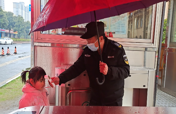 和很多学校不同,春幼百馨西苑园区紧邻马路,学校大门就是他们每日步行的必经之路,由于附近居民人数较多、早晚人流量大,为方便管理,疫情期间我们对大门外排队等候区进行了一米线的划分,安上了隔离带。这给附近散步的居民带来了稍许不便,这也常会引来居民的不理解。作为保安组的队长缪志林,他总能笑脸相迎、笑脸相送,我们和家长、周边居民都没有矛盾,避免了很多纠纷。