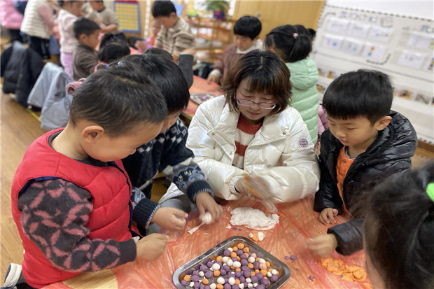 午点时间,宝贝们品尝着软糯甜香的劳动成果,碗中的元宵吃起来似乎格外香甜呢!