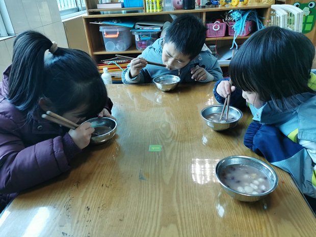 圆圆的元宵,孩子们品尝着自己亲手做的元宵时感到无比的香甜,吃完后孩子们直呼:“真的太好吃啦!”