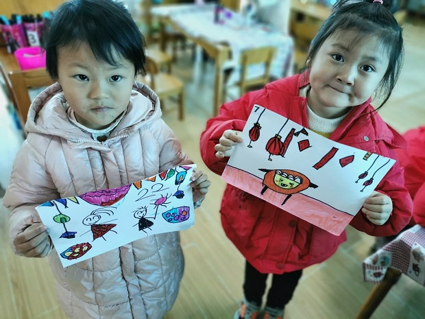 小朋友共同庆祝元宵佳节,一起动手来创作,看,孩子们有的画元宵,有的画花灯,每个人都画的特别认真而富有创意。