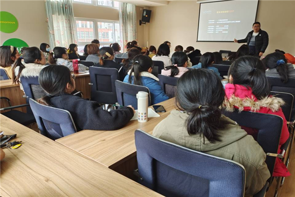 培训现场,贺老师介绍了普及课的基本信息,结合普及课的结构、教案的使用、活动前需要了解的身体和心理知识等内容进行了相关的理论培训。他强调:普及课是以女教师为主进行的以篮球为载体的游戏教学活动,分大、中、小三个年龄段,需要年级组深入沟通,根据目前园所本学期的课程安排,结合班级幼儿现状,设置班级教学目标。