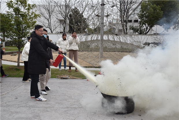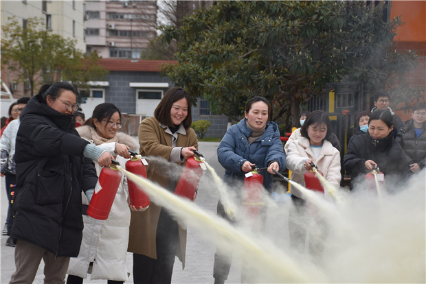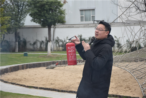 为加强幼儿园消防安全工作,提高教职工使用灭火器材的能力。2021年3月3日下午,银河幼教集团2020-2021学年度第二学期教职工消防安全实操练习在常裕园区开展。在后勤部门的部署安排下,幼儿园对全体教职工开展了灭火器的使用培训活动。
