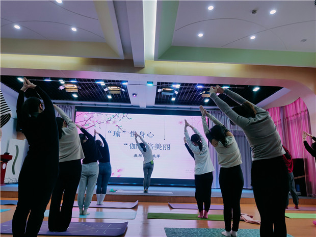 凤凰湖园区的教职工们静心学习瑜伽,练就“美的形体”。拥有瑜伽导师资格证的倪老师,带领大家进行打坐、体式的练习。大家跟着舒缓的节奏享受“瑜伽”带来的宁静之美,以更健康、更快乐的状态投入到后续工作中来。