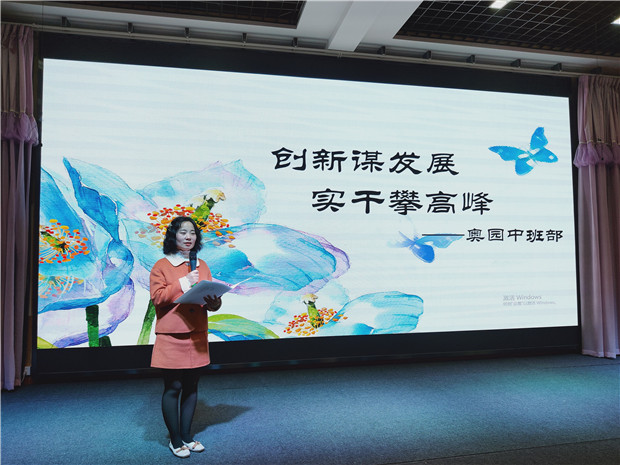 中心园区中班部陈晓旦老师以“创新谋发展,实干攀高峰”为题进行演讲。