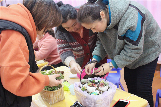 吕墅幼儿园围绕“美的艺术”开展“多肉种植DIY”活动。教职工们精心挑选各种颜色、品种的多肉,从色彩、层次、创意布局等方面思考种植的艺术美,一盆盆精致美观的多肉小景观在大家的巧手下诞生了。