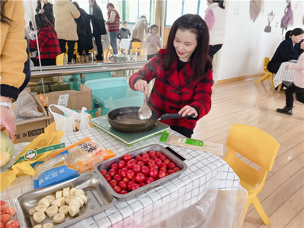 中心园区小班部围绕“美的生活”开展甜点制作活动,活动现场气氛热烈,欢声笑语不断。大家纷纷化身甜品师,动手DIY制作各式点心。软糯可口的“奶枣”、香甜美味的芒果千层、酸甜可口的糖葫芦……充分展现出教职工们对美好生活的热爱。大家和美味的甜品合影留念,记录这一温馨甜蜜的时刻。