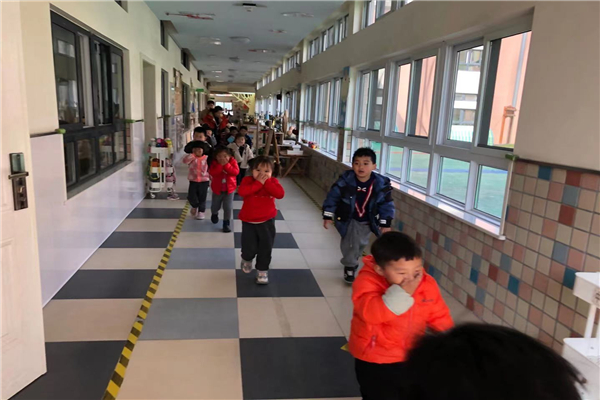 伴随着警报声的响起,各班幼儿在老师的带领下,捂住口鼻、弯腰迅速从安全通道有序撤离。幼儿到达指定的安全位置后,各班老师迅速维持好秩序,及时清点人数,组织幼儿在安全地带以班级为单位集合后就地待命。