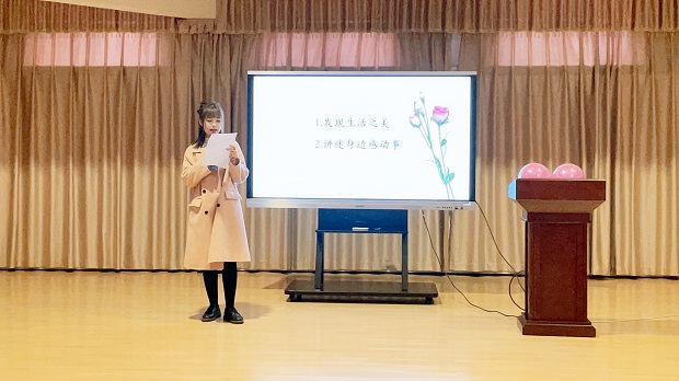 接下来的环节是“讲述身边的感动事”。现在人们生活的节奏越来越快,很多时候人们都因繁忙而忽略了许多事情,漠视了许许多多令人感动的事情,但其实感动就在身边。本次演讲邀请了十一位老师参加,演讲过程中,老师们紧扣主题,从身边人、身边事出发,用一个个生动的小故事,诉说了以“立德树人”为己任的身边人,把以德立身、以德立学、以德施教、以德育德的优秀教师作为今后的榜样。