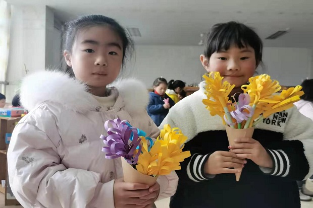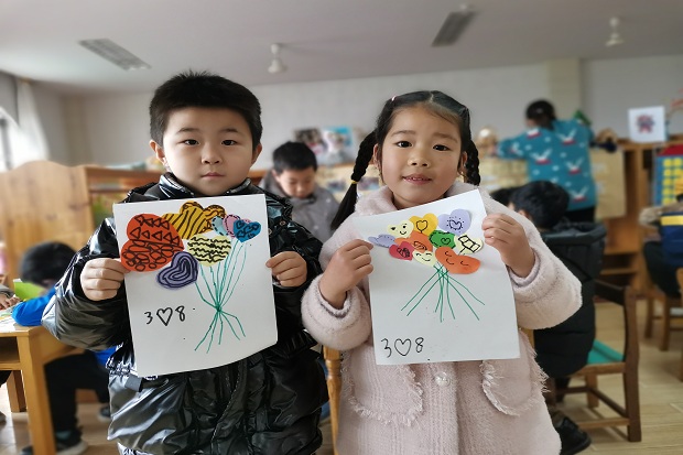 春寒依然料峭,幼儿园里却充满了暖意。为了给幼儿提供表达爱意的机会,我园以庆祝“三八”妇女节为契机,让孩子了解3月8日是全世界妇女的节日,幼儿园各班级老师根据孩子年龄特点开展了做手工花等为妈妈、奶奶送祝福的教学活动。