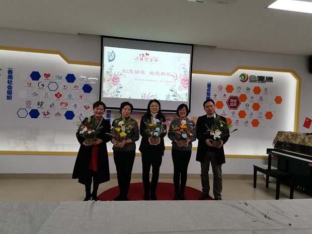 绽放的花朵,书写春天的讯息,在充满希望和理想的2021年,我们迎来了第111个“3.8”国际妇女节。滨开区春江街道联合滨江豪园幼儿园,特别推出建党百年暨“3.8”国际妇女节纪念活动,春江街道办事处副主任马琴女士、春江街道老年协会会长、关工委主任徐筱琴女士、春江街道行政审批局局长巢萍霞女士、春江街道行政审批局副局长曹立先生以及春江街道行政审批局文体条线的女性工作人员和滨江豪园幼儿园全体教职员工相聚楠木厅,共享节日喜悦。