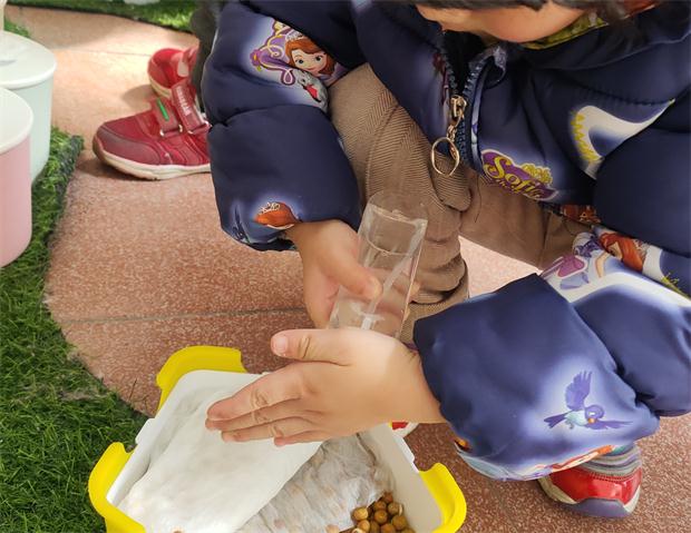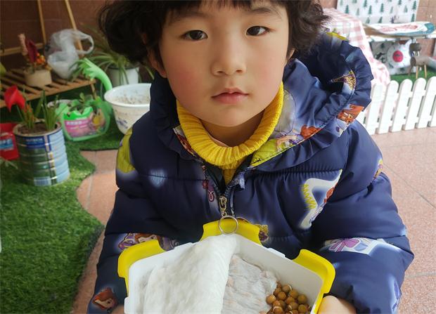 瞧:孩子们沐浴着早春温暖的阳光,来到植物角,亲手栽下一棵棵由家长提供的小种子,孩子们拿起工具,挖土、种植、填土、浇水,个个忙得不亦乐乎。