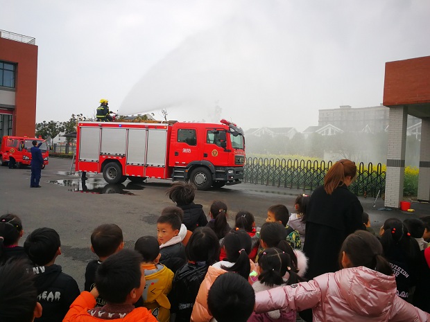最后,消防员叔叔演练了接高压水枪、灭火实践演习。高压水枪威力巨大,叔叔们动作迅速敏捷,得到了在场孩子和老师们的阵阵欢呼声。