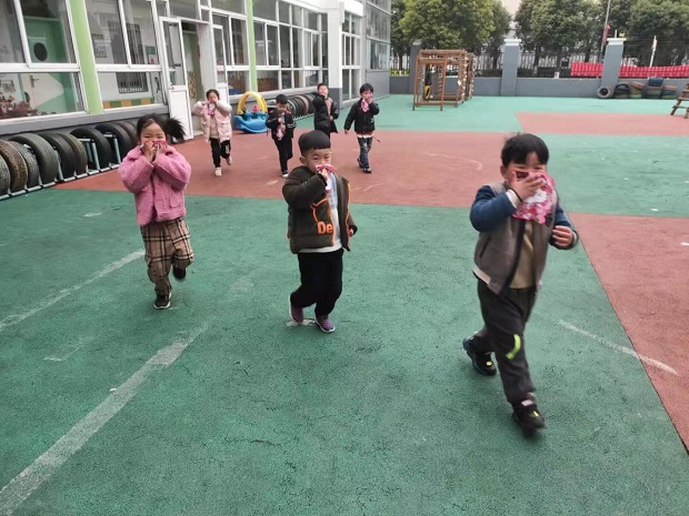 下午2点55分,当孩子们沉浸在好玩的餐后自主活动时,随着火警警报声的响起,全园幼儿在疏散引导员及老师的引领下,快速将湿毛巾捂住口鼻,俯身迅速撤离活动室,沿安全路线有序撤离。整个逃生过程仅用3分01秒时间,全园411名幼儿,47名教职工全部安全撤离至安全疏散撤离点。警报解除后,杨老师就本次消防演练活动进行教育讲话,使幼儿牢固树立“安全”为主的自救互救意识。