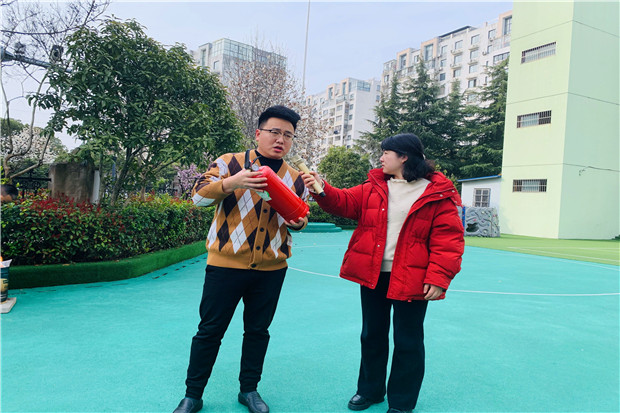 意外的产生往往在于疏漏,因此自查是最有效的方法之一。园所层面,我们根据相关规定邀请消防专业人员进行定期自查,确保无损坏,无失效。班级层面,老师也利用日常散步时间引导幼儿认识每一个安全出口和消防设备,了解不同器材的使用方式。双管齐下,确保全园师生安全。