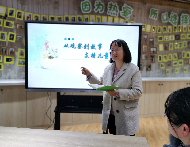 活动的最后,各会场上的教学行政基于现场进行点评提升。朱宏萍、张静、张丽三位主任分别从不同的角度切入,聚焦“观察中的问题与教师指导策略”以及“观察的理念、路径”等为大家细致分享了观察记录撰写的要点与方法。季雪芬主任以“从观察到故事”为题说学习故事的撰写要素及方法、谈对幼儿的支持与课程的生发。详细且有向的点评提升,让与会的教师们有了进一步的感悟和受益。