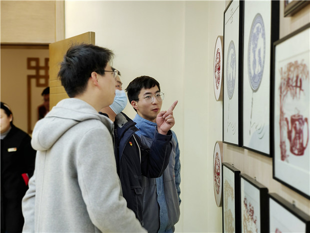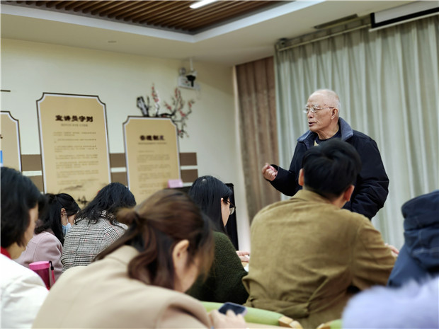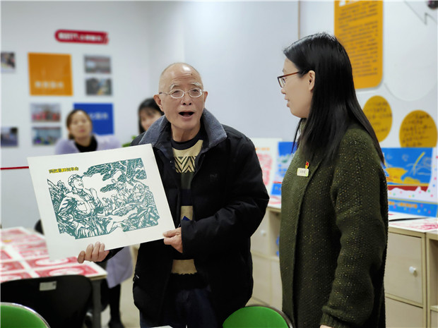 首先,全体党员教师参观了殷明欣老校长的刻纸室。殷明欣老师是龙虎塘中心小学退休老校长,今年已经78岁高龄。退休后他充分发挥自己的刻纸特长创办刻纸班,带领有相同爱好的刻纸成员一起为各重大活动举办刻纸展,受到很到了社会广泛好评。小小的刻纸室摆满了各个时期的刻纸作品,非常引人入胜,特别是“建党百年”刻纸展中的作品,每一幅都是一个生动的党史故事。栩栩如生的画面把每一位参观者带到了那个血雨腥风的峥嵘岁月,在殷老师的详细讲解下,我们看到了共产党带领中国人民从“站起来”到“强起来”的每一步。殷明欣校长介绍到:“建党百年”刻纸展已经早早着手准备,希望大家能通过刻纸一起铭记党史,不忘初心,坚定前行。