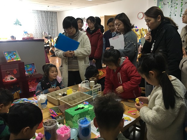 本次调研组针对班级区域活动的环境创设、游戏现场、教师的观察等环节进行了跟踪观摩,全面了解幼儿活动现状、活动材料投放的适宜性,教师的组织指导能力。