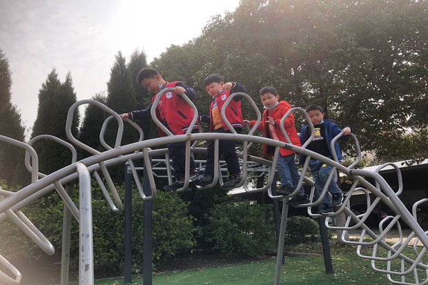 上午8:20大班的孩子们整齐的排着队伍从幼儿园出发了,一路上孩子们兴奋不已,问题不断:哥哥姐姐们上课要考试嘛? 小学和幼儿园一样有区域游戏吗? 小学生吃饭也在教室吃吗? 带着问题和强烈的好奇,我们走进了圩塘中心小学。