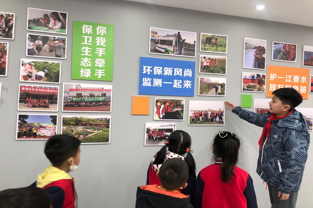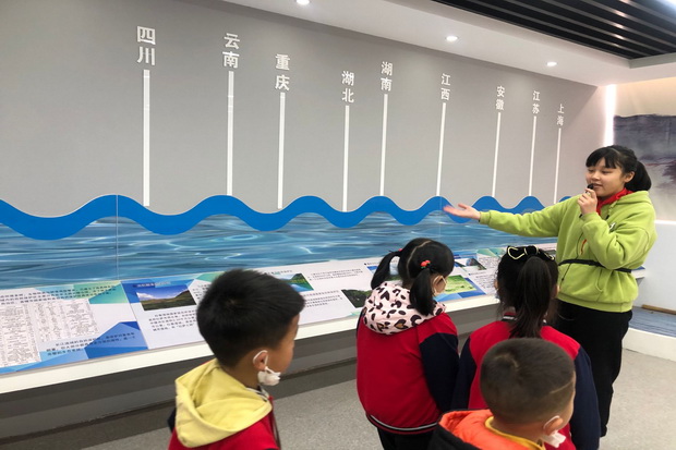 孩子们在小学哥哥姐姐的带领下,首先参观了农耕园、长江大保护展厅,接着还参观了图书室、舞蹈室以及小学食堂。孩子们静静地聆听着哥哥姐姐的讲解,伴着一阵悦耳的铃声,课间活动到了,孩子们和哥哥姐姐们来到操场,参与了小学的升旗仪式。看着小学的哥哥姐姐自信大胆的进行国旗下讲话,诗朗诵孩子们更是对小学流露出向往和羡慕,看得出他们正对做一名小学生充满着期待。