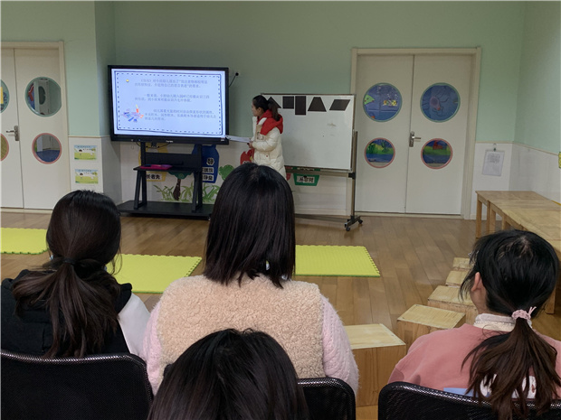 2021年3月24日下午,三井街道河海幼儿园骨干教师季叶洁、郝卫锋为全园教师展示了数学和体育的领衔课程。