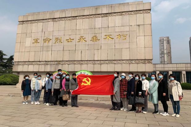 在建党一百周年之际,习近平同志在2021年2月20日召开了党史学习教育大会,会上强调了 “学党史、悟思想、办实事、开新局”的要求。奔牛实验幼儿园党支部积极组织党员开展学党史,怀先烈活动。3月29日下午,全体党员同志齐聚常州烈士陵园,将党史学习教育课堂搬进烈士陵园,缅怀革命烈士,重温入党誓词,从党史中汲取继续前行的智慧和力量。