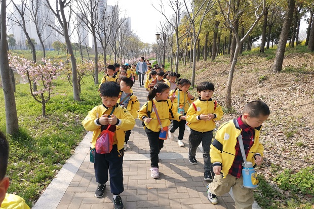 结合大班“我们在春天里”主题课程,为了让大班幼儿感受春天的变化,产生热爱大自然的美好情感,锻炼身体素质和远足能力,3月30日下午,孟实幼大班组开展了“走进自然,拥抱春天”远足踏青活动,共有179名幼儿参加。
