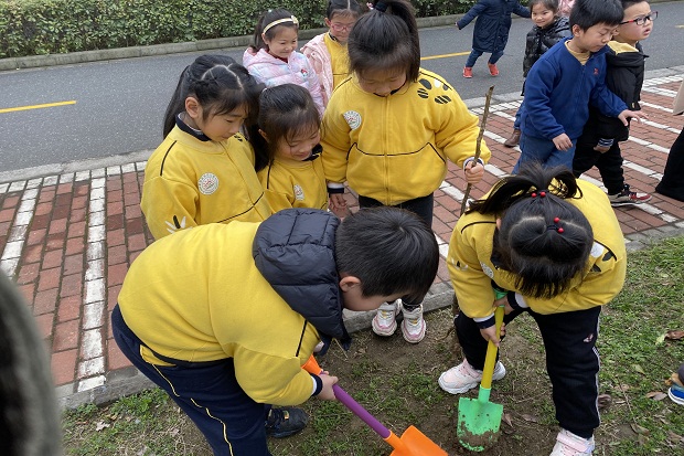 为了使孩子树立保护环境,热爱大自然的意识,养成爱护绿色环境的良好习惯,2021年3月31日上午,孟实幼大班组开展了植树护绿活动。